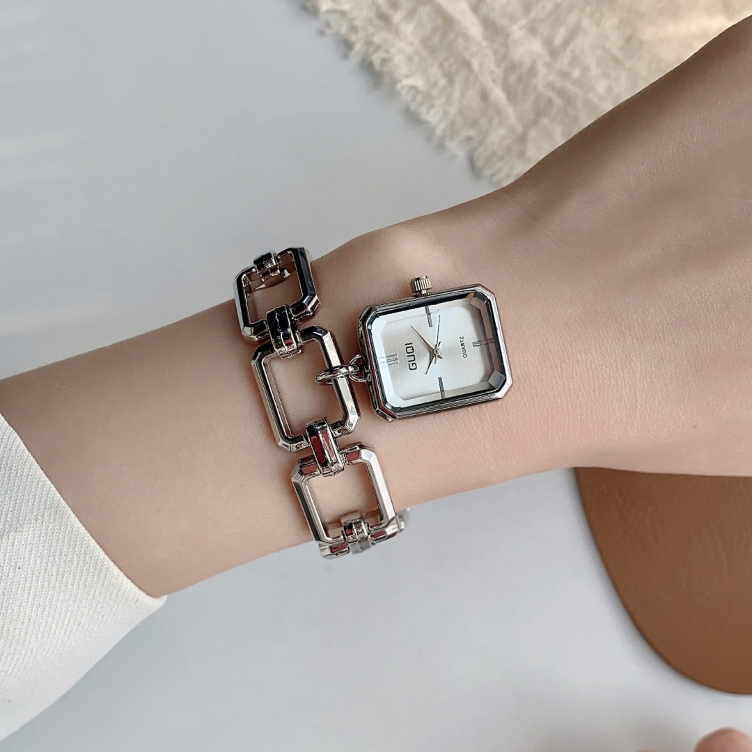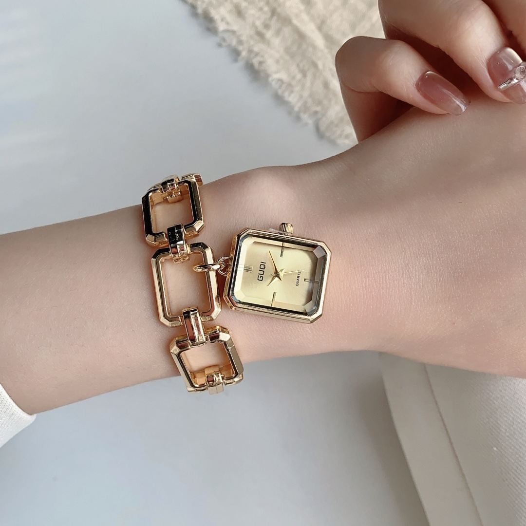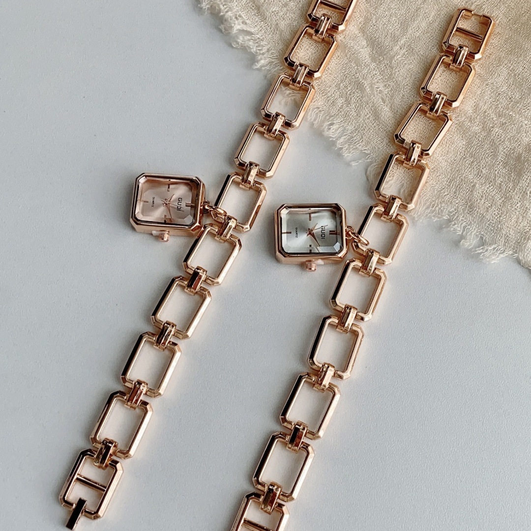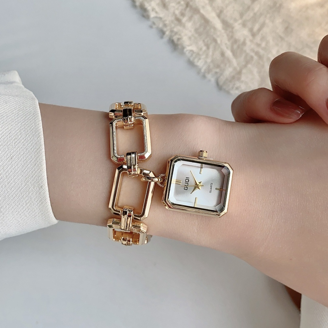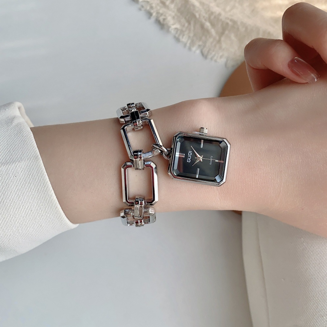Womens Decorative Watch With Square Pendant And Bracelet Style